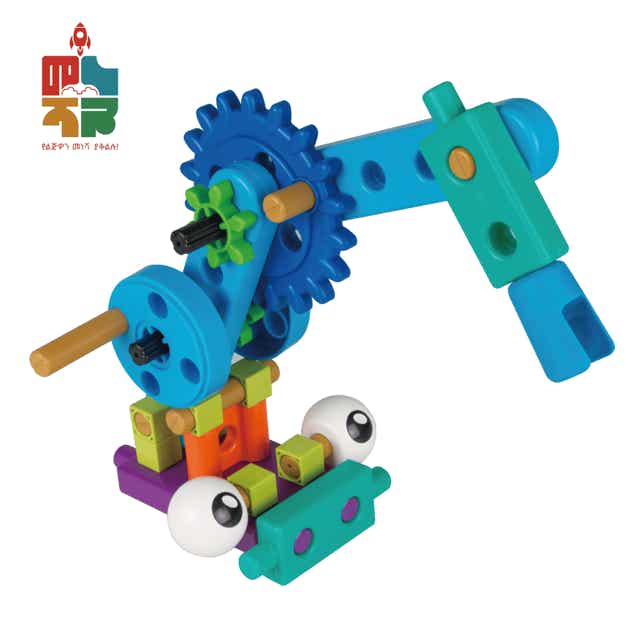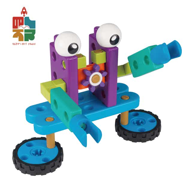 ልጆች የተለያዩ ሮቦቶችን በብሎክ ይስሩ